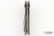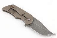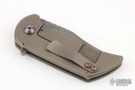 This Tracker Jacker by Jonathan McNees features a acid washed tanto blade with swedge, notched thumb rest and flipper. The handle is comprised of an acid wash/tumbled titanium frame over single barrel spacer. Matching tip up titanium clip. Great blade seating, detent and lock up. Comes in a Pena zipper case. Has a couple light scuffs, excellent condition otherwise.