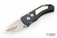 This auto from Smith & Wesson has a satin finished blade. Black aluminum handle with bone inlay. Includes the original box. Excellent condition.