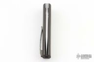 This Mantis Flipjoint by Jared Oeser features a hand rub satin finished blade with flipper. The handle has OD green micarta scales with grey G-10 and gray liners, polished zirconium backspacer, DarkTi tip up clip, and lanyard hole. Has a double detent system. Comes with original box, leather slip, and FoxHanx handkerchief. Nice detent, action and blade seating. Has a couple light scuffs, otherwise excellent condition.