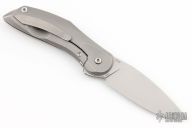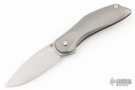 This Urbis from Alexander Cheburkov features a drop point blade with swedge, notched thumbrest and flipper. The handle has a milled titanium frame with matching tip up clip and backspacer. Great blade seating, detent and lock up. Includes a zippered case and COA. Has a couple light scuffs, otherwise excellent condition.
