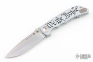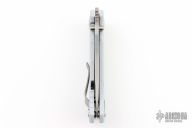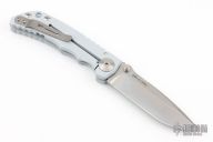 This Harsey framelock folder by Spartan Blades features a stonewash finished drop point blade with dual thumbstuds and a notched thumbrest. The handle has a bead blast finish titanium frame with a laser engraving a tip up titanium clip and filler tab. Has nice detent, lockup, and blade seating. Excellent condition. Comes with original box.