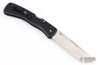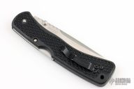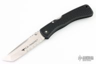 This Gunsite II lockback folders by Cold Stel feature a partially serrated tanto blade with fileworked thumbrest and dual thumbstuds. The handle has black composite frame with an integral clip. Nice lockup and blade seating. Has a little wear on the clip, otherwise excellent condition.