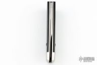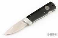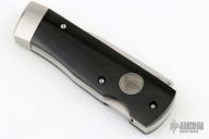 This Rolox Viper Sliding Belly Lock has a bead blast finished stainless steel drop/ spear point blade with false top edge and notched thumbrest. Handle has a bead blasted stainless steel frame with black linen micarta scales, stainless steel belly/ lock spacer. Has a couple light scratches, otherwise excellent condition.