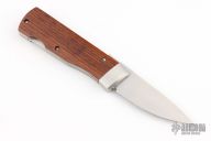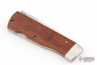 This Rolox by Benchmark Knives features a satin finished blade with swedge and notched thumbrest. The handle has a satin finished stainless steel frame and cocobolo scales, stainless steel liners and backspacer. Has some light scratches, otherwise excellent condition.