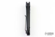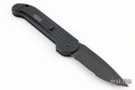 This LUDT side opening automatic by Microtech has a black blade with a partially serrated edge and a black aluminum frame. This tactical version has black fittings. Stainless steel clip. Dated 04/2019 and serial number 11205. Comes with original box and papers. Has some scratches on the clip, excellent condition otherwise.