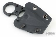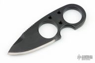 Designed for personal carry and offers the maximum design for a strong finger-locked grip. Made from D2, black finished blade, this .251" inch thick knife is extremely durable and will last for generations. Includes a custom Kydex neck sheath designed to securely lock the knife in place. Has a few scuffs, otherwise excellent condition.