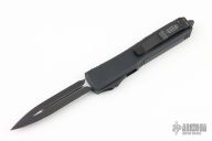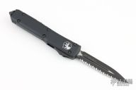 This Ultratech OTF automatic by Microtech features a D/E black blade with one fully serrated edge. Black aluminum contoured frame with black hardware and tip down stainless steel clip. Dated 06/2019 and s/n 146934. Includes original box and papers. Has a couple light scratches on the clip, Excellent condition otherwise.