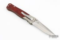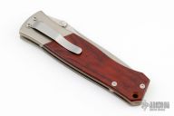 This is a Boker/Brend collaboration is Discontinued. The blade is satin finished with dual knurled thumbstuds. The handle has titanium bolsters, wood scales, stainless liners and tip down stainless clip. Nice detent, lockup and seating. Has some light scratches, otherwise excellent condition. Comes with original box and papers.