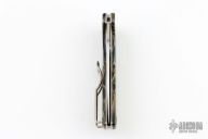 A Chaparral is a shrub native to the Western United States with the unique ability to perennially survive, revive and regenerate after being destroyed by drought. It’s also what Spyderco calls a new and continuing series of gentlemen’s folders. Mid-sized Chaparral folders will have identical blade and handle profiles but showcase variant handle materials. Handle options will be chosen for their elegant appearance and functional utility with a focus directed at making the Chaparral series unique as well as a serious contender in the gent’s knife genre. The Chaparral 2 has a unique textured titanium handle with a mid-positioned back lock and screw-together construction. Attached to the ultra-slim handle, a left-right, tip-up pocket clip arranges the knife deeply inside a pocket. CTS-XHP stainless steel blade. The blade is flat ground and plain edged for the best available cutting performance with non-skid jimping located at both the spine and choil. Excellent condition. Comes with original box and papers. DISCONTINUED.