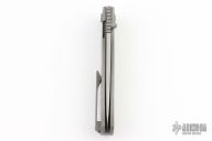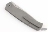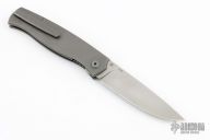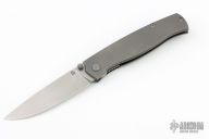 This Strizh by Alexander Cheberkov features a bead blasted blade with notched thumbrest and a single thumbstud. The handle has a bead blasted titanium frame with blasted hardware and inlaid liner, matching backspacer and tip up clip with hidden screws. Comes with original box and papers. Has a few scuffs, otherwise excellent condition.