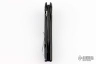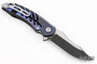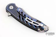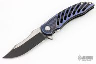 This Cyclone Framelock Flipper from Sharp By Design has a two-tone clip point S35VN blade with swedge, notched thumbrest and flipper. Handle is milled 6AL-4V titanium, stainless steel tip up clip, stainless steel lock bar insert, and milled titanium backspacer. Flips wonderfully. Excellent lockup and detent, and blade seating. Comes with a zippered case. Excellent condition.