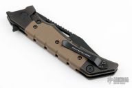 - "Stacked" G-10 handle scales offer a high performance grip.