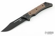 Tim Galyean's design prowess is on full display in this classic military knife inspired Zero Tolerance 0223 folding knife. The classic bowie blade is made from CPM-20CV steel in a black DLC coating. Earth brown G-10 scales mimic the original Military leather stacked handle with a titanium frame lock providing added stability. A reversible tip-up pocket clip completes the solid Tim Galyean design.