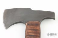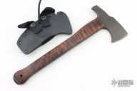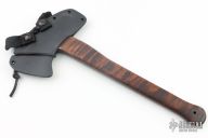 A combination tool developed for Military and Law Enforcement use, the WK Combat Axe is made for breaching and combat applications. The user has easy access with a fast draw carrier. An integral glass breaker extends beyond the end of the handle. The WK Hammer Combat Axe is basically the same axe as the WK Combat Axe, but with a hammer pole rather than a spike. It is a great woodcraft or field axe or performs well as a breaching axe when hammering is part of the operation. A partial cord wrapped upper handle option is available. If the handle is damaged under the head, a new cord can readily be installed. The cord is also an excellent emergency resource. Axe Specifications Axe steel: 80CrV2 Black oxide no-glare finish Head length: 5 7/8" Overall length: 13 3/4" Blade thickness: 3/8" Skeletonized full tapered tang Integral Glass Breaker Partial cord wrap optional Sheath Fast draw carrier Lined Kydex® HD shockcord quick-release retention system Nylon belt straps with Mil-Spec Pull-The-Dot™ snaps Designed for multiple carry options (See our Info page for carry options) Comes with original packaging. Has some scuffs and a chip in one of the scales, otherwise good condition.