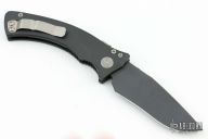 This Amphibian Auto has a DLC 154CM clip point recurve blade. Handle is black aluminum with non slip inserts and bead blasted stainless steel tip up clip. S/N #1402. Dated 03/2004. Includes nylon sheath, papers, and white box. Excellent Condition.