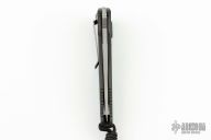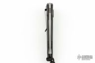 This Socom Elite Auto has a bead blast finished clip point blade with a partially serrated edge. Black aluminum handle with non-slip inserts. Stainless steel clip, tip down carry. Glass breaker. Dated 08/2000 and s/n 1144. Comes with original box, papers, and sheath. Has some light scuffs, and some spots on the button. Excellent condition otherwise.