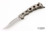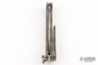 This Model 186 The Titanium by Buck Knives features a satin finished clip point blade with nail nick. The handle has a two-tone titanium frame with matching tip up clip that is left or right reversible. Has scuffs and scratches, has been used, fair condition.