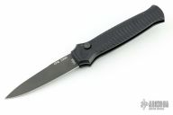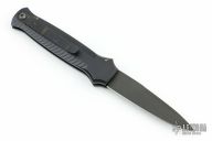 This Mini BodyGuard auto by Piranha Knives features a black finished bayonet blade, ribbed aircraft aluminum handle, and titanium pocket clip. Has a couple light scuffs, otherwise great condition.