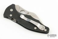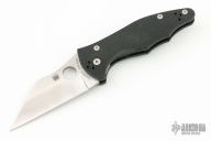 This Yojimbo 2 by Spyderco features a satin finished wharncliffe blade with thumbhole. The handle has a black G-10 frame with stainless steel liners, lock is on the spine of handle. 4-way reversible clip. Nice detent, lockup and blade seating. Comes in a white box. Has some light scuffs and scratches, great condition otherwise.