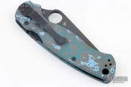 This Paramilitary 2 Linerlock Folder from Spyderco has a black finished clip point blade with thumb hole and notched thumb rest. Handle has black/blue Fat Carbon scales with stainless steel liners and stainless steel 4-way reversible clip. Comes with original box and papers. New condition.