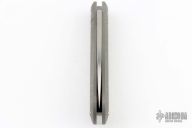 The Zulu Spear is a traditional knife pattern designed by the legendary knife maker Tony Bose. The Mini Zulu is an adaptation of the original Bose design by knife maker Enrique Pena. Giving it a smaller 3 5/8” closed length frame.  Making it an ideal size for everyday carry. Garcia modernizes this traditional slip joint pattern with a full titanium frame and a belt finish Bohler M390 blade with a polished swedge. The knife scales are bead blast finished and laser engraved. Has milled flute and pinch in the covers.  Includes a padded zippered case. Has a couple light scuffs and scratches, excellent condition otherwise.