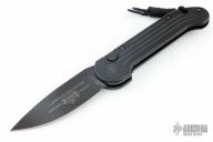 This LUDT side opening automatic by Microtech has a black blade with a plain edge and a black aluminum frame. This tactical version has black fittings. Stainless steel clip. Dated 10/2022 and serial number 27939. Comes with a Microtech box and papers. Has a couple light scuffs and scratches, otherwise good condition.