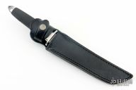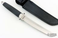 This Magnum Tanto by Cold Steel features a trailing point San Mai tanto style blade with .190" blade stock and 1.128" blade depth. The handle is comprised of a steel guard and pommel with a textured rubber grip over hidden tang construction. Includes original black leather sheath with belt loop. Has a couple light scratches, otherwise excellent condition.