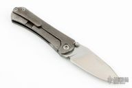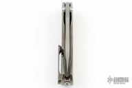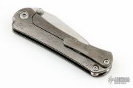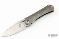 This SBTF by Borka Blades and John Gray features a satin finished blade with dual thumbstuds. The handle has a carved, orange peel finished and anodized titanium frame with a matching tip up clip. Nice detent, lockup and blade seating. Comes with a zippered case. Excellent condition.