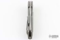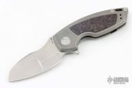 This Peace Duke by Custom Knife Factory features a stonewashed multi-ground sheepsfoot blade with notched thumbrest and flipper. The handle has a stonewashed titanium frame with carbon fiber inlay, matching titanium backspacer and tip up reversible clip, lanyard hole in the butt. Comes with nylon zippered case, COA and extra clip. Rides on bearings, nice detent, lockup and blade seating. Excellent Condition.