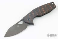 This Yaru by Fox knives features a black tumbled blade with thumbhole. The handle has a stainless steel frame with a carbon fiber scale. Includes the original box, padded case papers. Has a couple light scuffs, otherwise Excellent Condition.