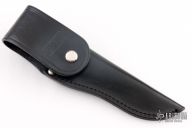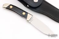 This Bloodhound by CAMIII features a mirror polished blade with .139" blade stock and 1.147" blade depth, full tang construction. The handle has nickel silver bolsters and butt cap, black linen micarta scales with red liners. Comes with a black leather sheath and original box. Excellent condition.
