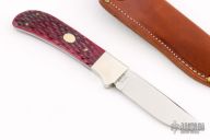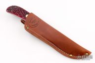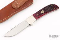 This fixed blade by Moore Maker features a mirror polished blade with .120" blade stock and .895" blade depth, full tang construction. The handle has nickel silver bolsters and jigged bone scales. Coems with original box, papers and brown leather sheath. Excellent condition.