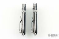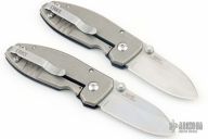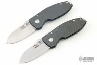 This Squid is a Lucas Burnley Design executed by Columbia River Knife and Tool. It features a tumble finished drop point blade with swedge, dual thumb studs and notched thumb rest. The handle is comprised of a carbon fiber "A" side scale and acid tumbled lock side over a black polymer backspacer with lanyard bail. The deep carry steel pocket clip is positioned for right hand, tip up carry. Comes with original boxes. Excellent condition.