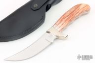 This Kalinga by Buck Knives features a mirror finished upswept blade, .179" blade stock and 1.294" blade depth, full tang construction. The handle has nickel silver guard, giraffe bone scales. Comes with original box, papers and black leather sheath. Excellent condition.