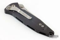 This Socom Elite manual linerlock folder by Microtech Knives has a stonewashed partially serrated blade with notched thumbrest and dual thumbstuds. Has a black aluminum handle with non-slip inlays, tip down blasted stainless steel clip. Serial number 0484 and dated 03/2018. Comes with original box and papers. Excellent condition.