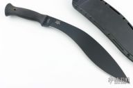 This Gurkha Light Kukri features a black coated recurve blade, .3" blade stock and 2.428" blade depth, hidden tang construction. The handle has a checkered rubber grip with lanyard hole. Comes with a kydex sheath and original box. Has a couple of spots on the blade edge, excellent condition otherwise.