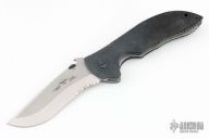 This UBR Commander by Emerson Knives features a stonewash finish blade, with thumbdisc and thumbramp. The handle has titanium liners, black g10 scales, and black G-10 backspacer and a tip up stainless steel clip. Wave feature. Dated 2014 and #339. Excellent Condition.