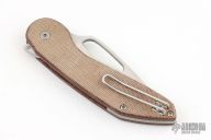 This Avant liner lock by Luft Concepts features a satin finished drop point blade with a large thumbhole.  The handle features micarta scales over bead blasted liners and backspacer with a stainless steel tip up pocket liner.  Includes a padded zippered case. Serial # 11.  Nice detent, lock up and blade seating.  Excellent condition.