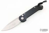 This LUDT side opening automatic by Microtech has a stonewash finished blade with a standard edge and a black aluminum frame. Stainless steel clip. Dated 05/2023 and serial number 32285. Comes with original box. Has some scuffs and scratches, has been resharpened, otherwise good user condition.