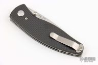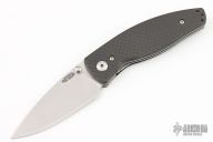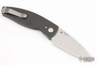 This Neutron Linerlock by Three Rivers features a stonewash finished blade with dual thumbstuds. The handle has carbon fiber scales, titanium liners and tip up reversible clip. Nice detent, lockup and blade seating. Has some scratches on the clip, otherwise excellent condition. Comes with original box and black G-10 scales.