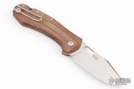 The Grand is a full-size knife, and the newest member of the GiantMouse family. Both bold and brawny, the Grand is a design collaboration between Danish knife makers Jesper Voxnaes and Jens Anso that features recognizable design cues. Its premium Elmax steel blade is large and takes charge with a supremely sharp edge. The knife gets strength from the nested steel liners and a single-piece backspacer. Sculpted green canvas micarta handle scales provide a desired surface that is grippy and comfortable in hand. The deep-carry reversible wire clip keeps the knife securely in your pocket, but is easy to get to when you need it. Whether every day at the office, or on a camping trip, the Grand will serve you well.