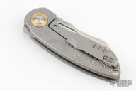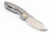 Dmitry Osarenko is a well known custom knife maker from Saint Petersburg, Russia. His design for the October folding knife, for Kizer, features a highly functional titanium handle that is curved to fit the hand and a finger choil to grip and go. The options to open this blade are with either the flipper tab or the cut out, thumb hole on the blade. Defined jimping on the blade's spine also is reliable to keep your fingers and hands steady when using. The CPM-20CV steel blade is strong and holds an edge well enough to make continuous cuts and slices.