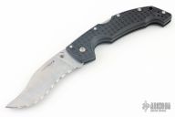 This Large Voyager by Cold Steel features a satin finished fully serrated recurve clip point blade with dual thumbstuds. The handle has a black FRN frame with tip up clip and lanyard hole. Taiwan Made. Comes with original box and clip (currently not attached). Has a couple light scuffs, excellent condition otherwise.