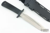 This ODA by Cold Steel features an integral rubber guard/handle which substitutes for the Military Classic’s Micarta grip and stainless guard. The deeply checkered Kraton offers an even better grip than Micarta does and is equally durable. Instead of the leather sheath and stone, the ODA comes with a high tech Secure-Ex model. Secure-Ex is far more cut resistant than leather is and won’t rot, crack or warp when exposed to wet or harsh weather. Comes with original box. Excellent condition.