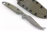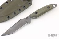 This Kitsune S by Work Tuff Gear features an Acid Wash finished SK85 Steel blade with notched thumbrest, .150" blade stock and .935" blade depth, full tang construction with sculpted green G-10 scales. Comes with original box, sheath and extras. Excellent condition. 2nd Production dated 01/2024.
