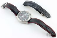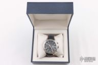 Automatic Chronograph Ref.1308. 10 ATM water resistant. Stainless steel case. 25 Jewels. Swiss Made. Comes with original box, Certificate of Guarantee, extra leather strap and international Warranty card. Has some light scratches, otherwise excellent condition.