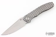This D.U.K. by Kody Eutsler features a matte finished blade with dual titanium thumbstuds. The handle has a milled titanium frame with black titanium pivot collars, tumbled titanium backspacer and tip up clip with hidden screws. Rides on bearings, nice detent, lockup and blade seating. Comes with a zippered case and COA. Excellent condition.