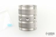 "Turned from a solid two inch bar of 303 stainless steel, the BigShot can truly be called a drinking tool. With a generous three fluid ounce capacity it is the perfect size for an ice cube and a splash of your favorite libation. And weighing in at nearly half a pound these mighty vessels give new meaning to the term "heavy drinking"! Dishwasher safe and made to last virtually forever." Includes COA and miniature dice. Excellent condition.