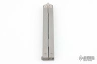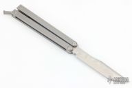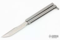The Michael Zieba Balisong is a custom butterfly knife available at a production price point. It features his trademark harpoon drop point spine profile with a tanto cutting edge so that it will fit into the slender frame. The blade has a laser engraved San Mai pattern. The titanium handles bead blast finished with black spacers. The bearing pivots lead to very smooth flipping action and its proper balance allows you to perform any trick you're daring enough to try. This butterfly knife is a fantastic representation of Mike as both a designer and a knifemaker. It's precise, stylish, different from the rest, and is both new age and classic. Includes a padded zippered case. Excellent condition.