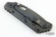 This MSC SMF CC features a black DLC blade with tumbled flats and satin grinds. It also has a dagger grind with false top edge, thumb hole and dual thumbstuds. Notched thumbrest. The handle is comprised of black G-10 with DLC titanium lockside, black hardware, over travel stop and tip up clip. Has some light scuffs, otherwise excellent condition.